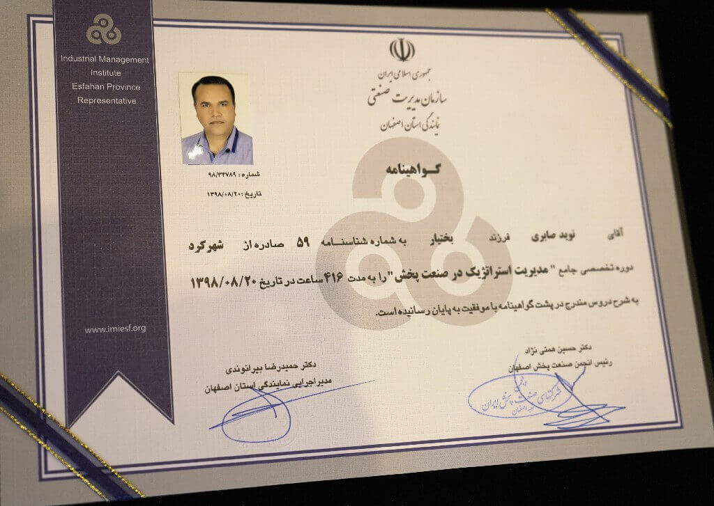 در پایان دوره به شرکتکنندگانی که ساعات حضور آنها در جلسات دوره ۸۵ درصد و یا بیشتر از کل ساعات دوره باشد، گواهینامه پایان دوره از سوی سازمان مدیریت صنعتی اصفهان اعطاء خواهد شد. بدیهی است در غیر اینصورت گواهینامه صادر نخواهد شد.
